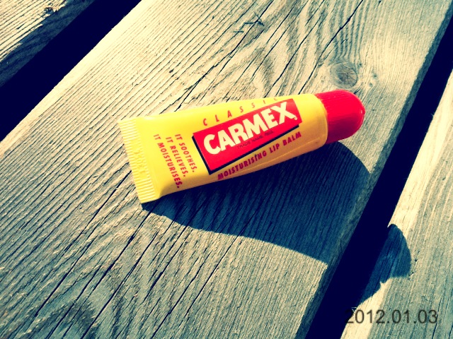 ...ist klein, gelb-rot, passt in jede Tasche und auch in jede Jackentasche. Er riecht gut, pflegt und meine Lippen lieben ihn. Es ist mein lovely CARMEX. Gerade im Winter brauchen meine Lippen immer besonders viel Pflege und ich schmier mir ungefähr alle zehn Minuten Labello, Kindercreme, Chapsticks oder eben Carmex auf die Lippen. Ja - man kann es sogar schon als kleine Sucht bezeichnen. Aber wenigstens eine Sucht die gut tut!