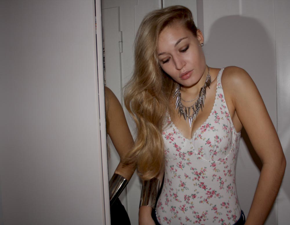Das Top ist eigentlich ein Body, den ich letztens meiner Mami geklaut habe. Der ist ganz alt und sie hat ihn schon als Teenie getragen.