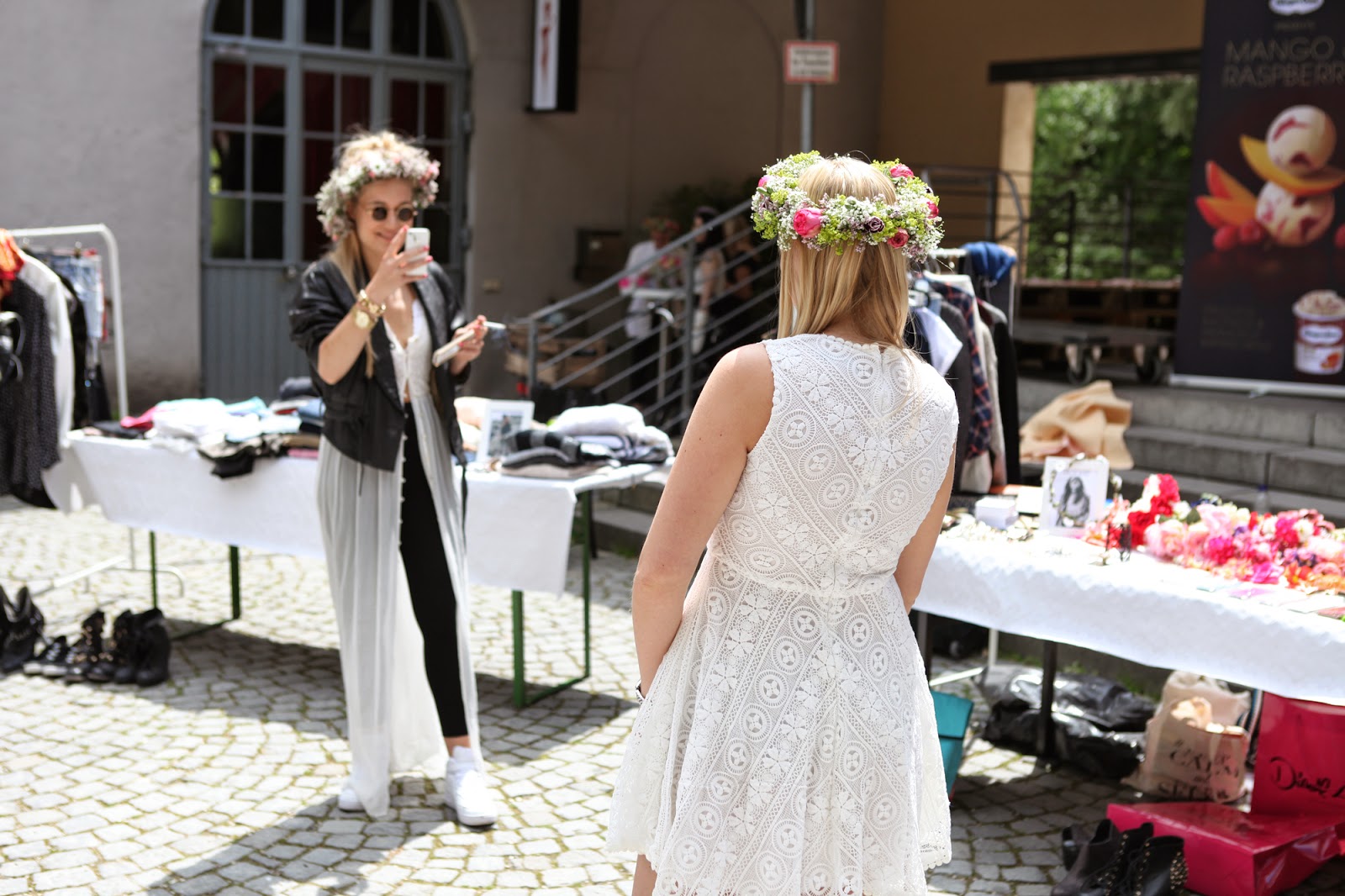 MIFLORA, die sich jeder selber binden konnte. Wir sehen alle aus wie Blumenkinder. Neben Blogger Ständen, die tolle Vintage Stücke verkauft haben, gab es zum Beispiel auch eine Jungdesignerin, Alessa Kaiser, die wunderschöne handgemachte Espadrilles verkauft hat. Auf
