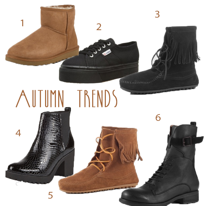 Und auch das Schuhwerk muss für den Herbst natürlich wieder aufgerüstet werden. Die Sandalen, Birkenstocks und Adiletten wandern in den Keller und die UGGs, Minnetonkas und Boots werden eingekauft. Hachja, Saisonwechsel hat schon was. Shoppen ohne schlechtes Gewissen, schließlich braucht man was Warmes :D. Vor allem auf meine kuschligen UGG Boots freue ich mich schon wieder mega. Auch wenn die Männerwelt das Schuhwerk meist zum Kotzen findet, sind es für mich die gemütlichsten Schuhe ever ever ever. Auch Minnetonkas habe ich mir dieses Jahr zugelegt und war schon im Sommer voll in love mit den Fransen Boots. Auch im Herbst kann man die Boots noch perfekt zu Festival-Fransen Looks kombinieren - nur bitte mit Strumpfhose und dickem Wollcardigan! Derbe Lederboots gegen eh immer und wenn es etwas schicker werden soll, darf ein bisschen Absatz und Lack-Snake-Look herhalten. Sollte es ein richtig schöner und trockener Herbsttag werden, sind Supergas diesen Herbst ein Must Have für mich. Ich habe mir jetzt die flache Version in schwarz geholt und liebe sie jetzt schon! Das Model mit Platform hat es mir aber definitiv auch ganz schön angetan! Was sind eure Fashion Pieces für diese Herbst Saison!