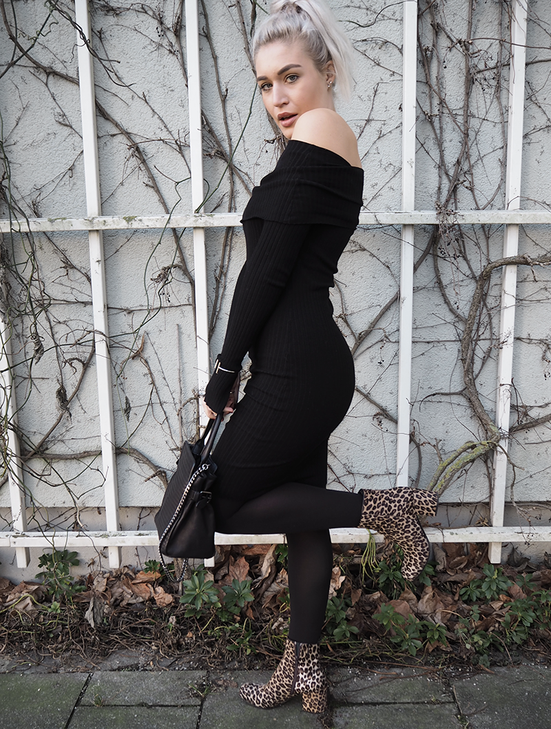 OFF SHOULDER KNIT DRESS AND LEO.