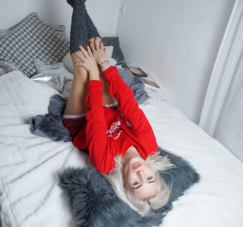 Manchmal gibt es diese Tage, da will man sich einfach nur ins Bett einrollen und nie wieder aufstehen. Eine Wärmflasche, fünf Decken, Kuschelkissen, eine Tasse Tee und ein guter Film oder ein Buch - gerade bei diesen Antarktis Temperaturen, die wir derzeit fast überall in Deutschland haben, darf man sich das "Nichts tun" auch mal gönnen. Was ich allerdings immer mache, sobald ich nach Hause komme: Mich in gemütliche Klamotten werfen. Enge Jeans, kneifender BH und dicker Strickpulli werden gegen die Lieblingsjogginghose oder gegen eine Schlafhose eingetauscht, dicke Socken angezogen und ein weicher Kuschelpulli übergeworfen. Daheim sein heißt für mich einfach Gemütlichkeit und ich habe auch absolut kein Problem damit, zuhause meine Homework in bequemen Klamotten am Schreibtisch durchzuführen. Ich darf mich nur nicht ins Bett legen, da läuft die Arbeit eher semi produktiv.